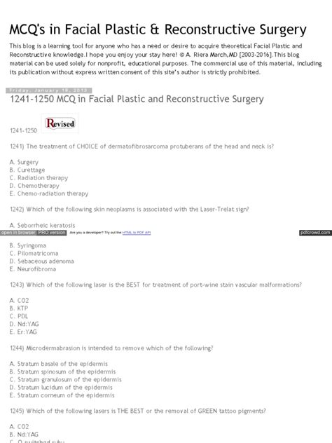 Read Online Plastic surgery surgery mcq Doc